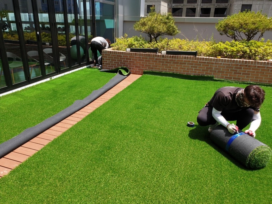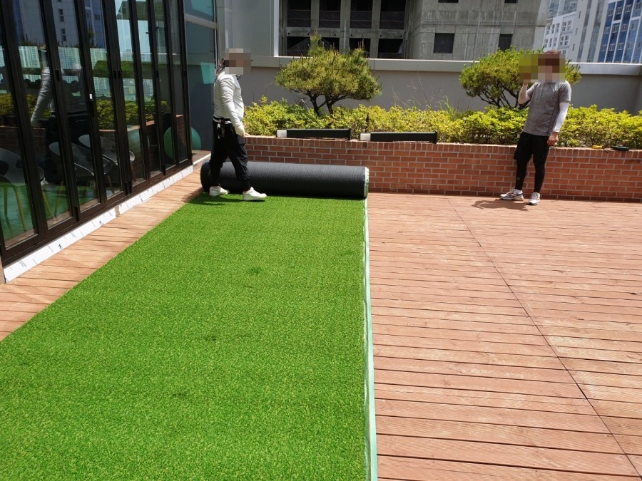 오늘은 인천 청라 신도시에 위치한 피트니스 센터 테라스 인조 잔디 시공입니다.
